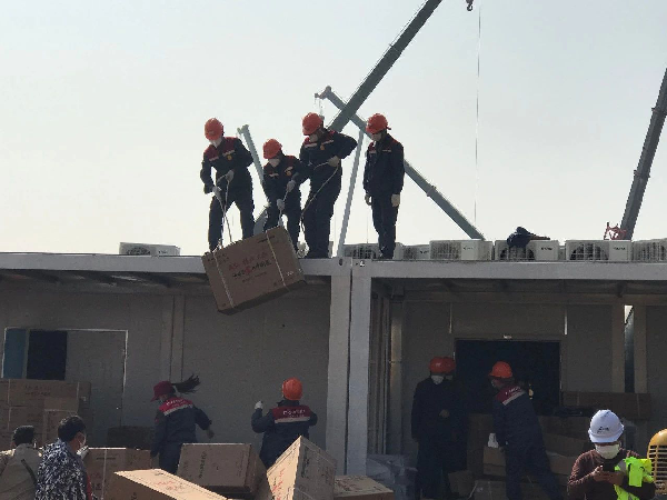▲火神山医院空调安装同步进行中